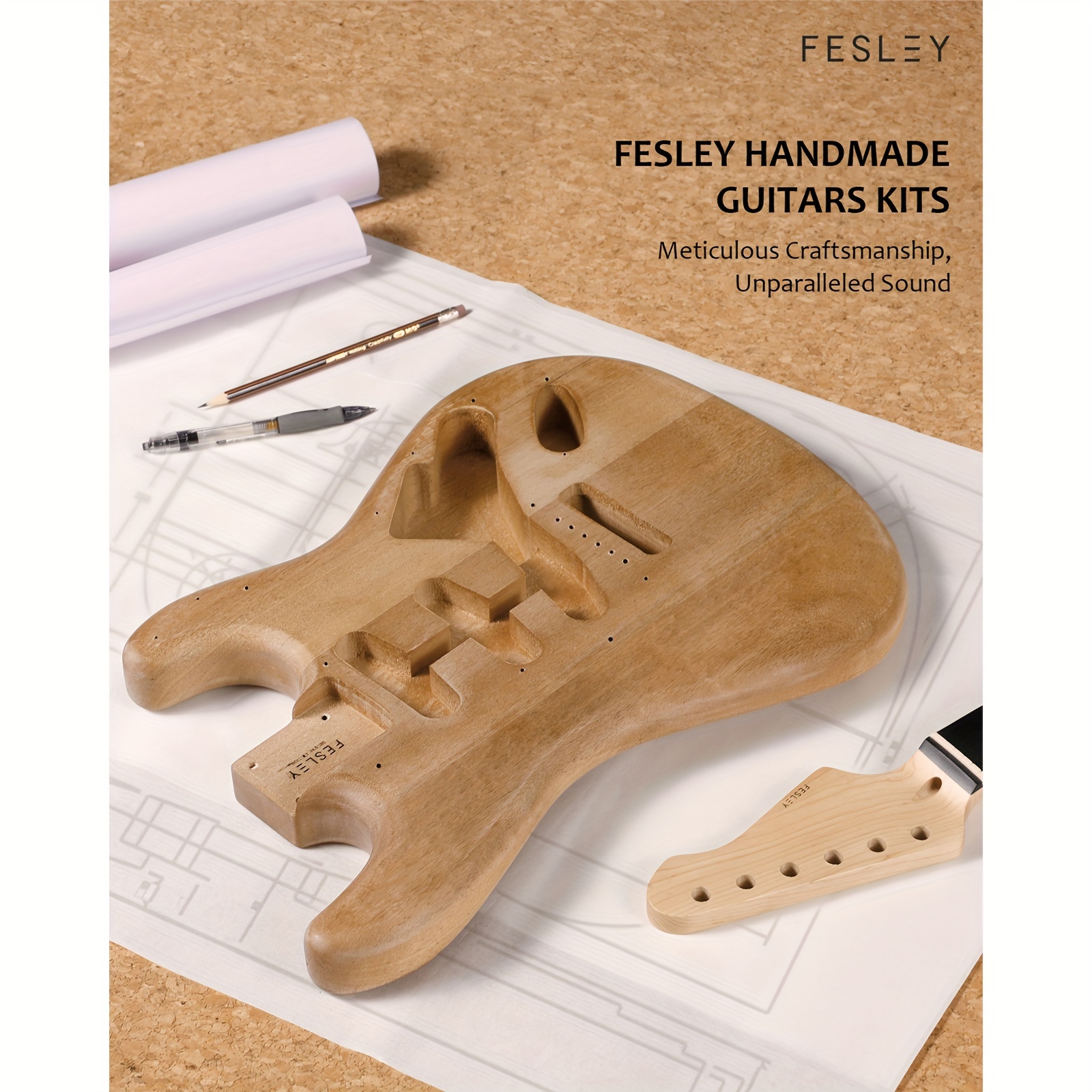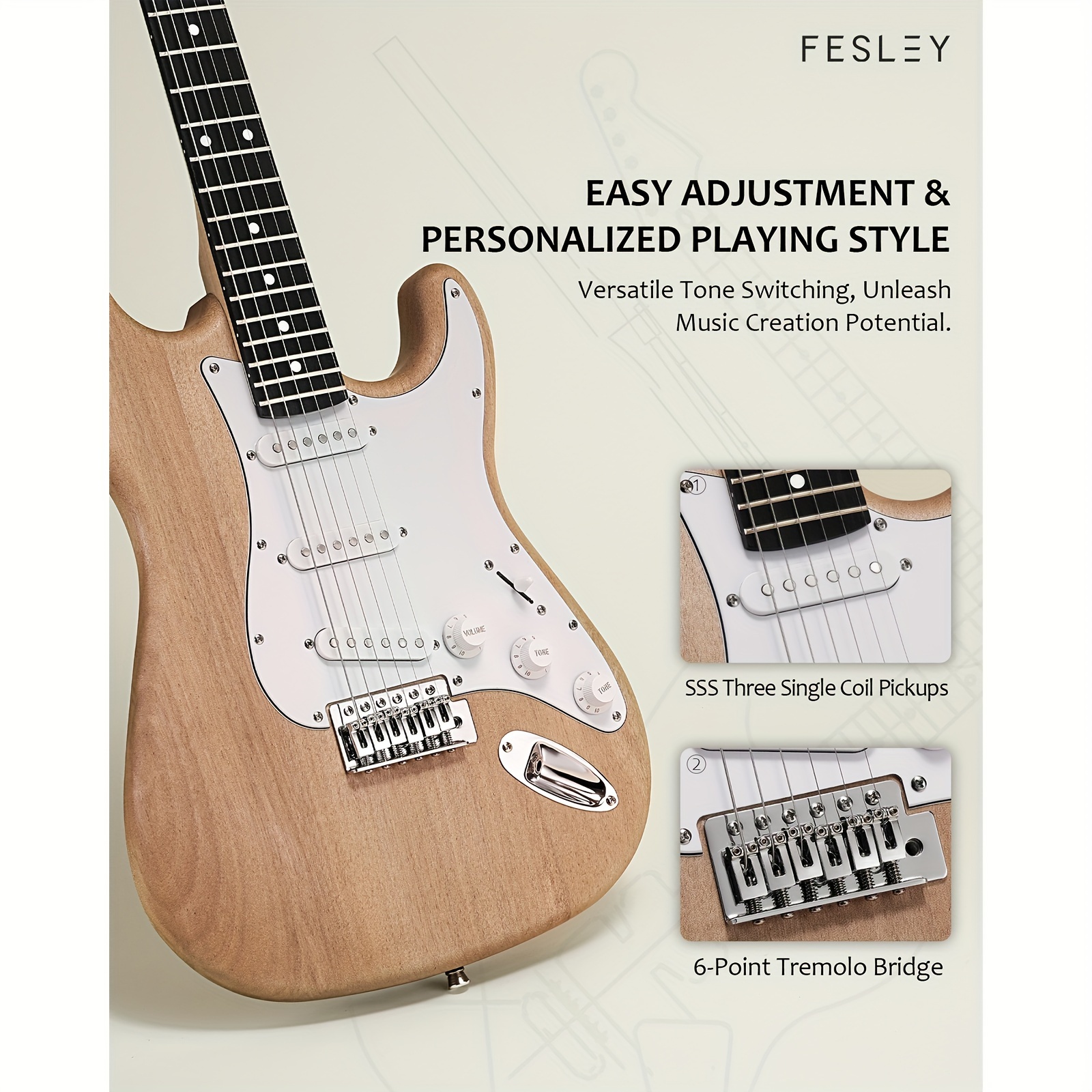 Specification: Fesley DIY Electric Guitar Kit, Build Your Own Guitar Kit with Poplar Body & Canadian Hard Maple Neck, ST Style, 6 Strings, SSS Pickups, Solid Construction, Fretboard Design, Natural, Music Craft Project, Home Guitar Assembly, String Instrument Kit, Instrument Builders, Hobbyist Musicians