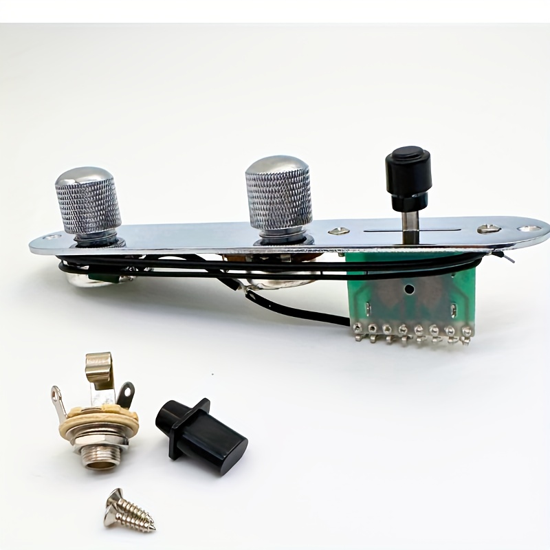 TL Electric Guitar 3-Way Control Panel Assembly 1.Designed specifically for Telecaster guitars, this all-in-one control module combines output jacks, potentiometer knobs, and toggle switches. 2.Crafted with premium materials and precision engineering, it delivers exceptional durability and signal stability. With easy installation, it enables seamless volume adjustment, tone switching, and attenuation—expanding your tonal versatility and dynamic control. 3.Ideal for both professional performanc