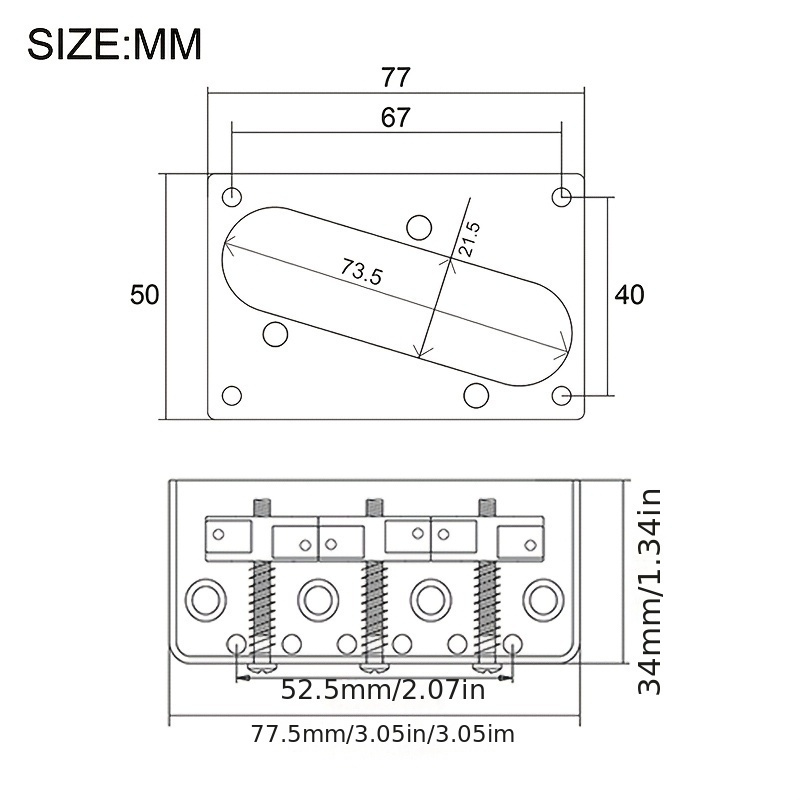 Specification: [Short Guitar Bridge with Cutaway] Pickup For TL Guitar With Short Guitar Bridge, Separate Border, Outer Dimensions (77X50mm) Inner Dimensions (73.5×21.5mm), Double-loaded Guitar Bridge, With Cutaway Side Panel And Compensated Brass Saddle